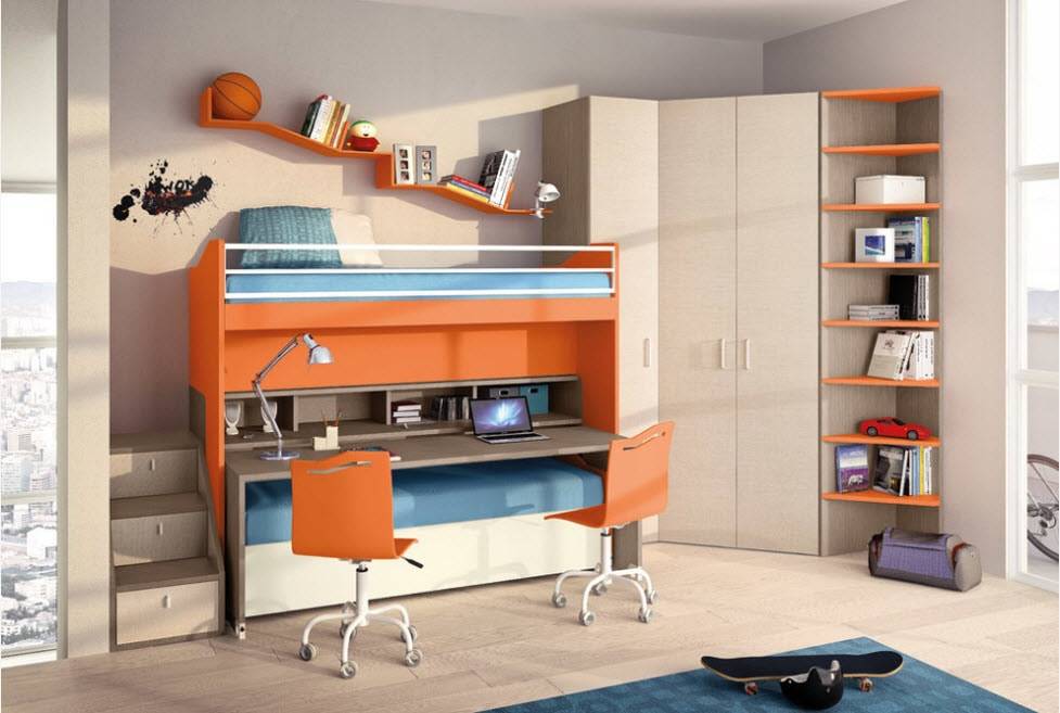 В детских комнатах нужна вместительная мебель, где будут храниться школьные принадлежности, разные игрушки и пр. Иногда внутрь ставят небольшой стол для компьютера: это сделает детскую более просторной. Здесь устанавливают вместительные гардеробные с тремя дверями. Обычно в них есть дополнительные секции.