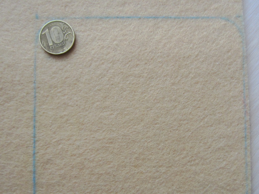 На обратной стороне фетра требуется нарисовать два квадрата. Каждый из них должен иметь стороны, равные 13 см.