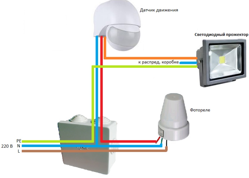 Сразу же хотелось бы немного отойти от темы и посоветовать Вам одновременно осуществлять подключение фотореле и датчика движения для освещения. В паре эти два устройства позволят включать светильник при наступлении темноты, только в том случае, если в зоне обнаружения появился человек. Если на участке никого не будет, то лампочки загораться не будут, что позволит значительно сэкономить электроэнергию.