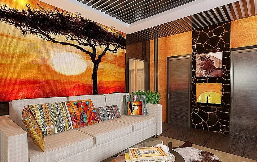 Виды саванн прекрасно подходят для гостиных в африканском стиле