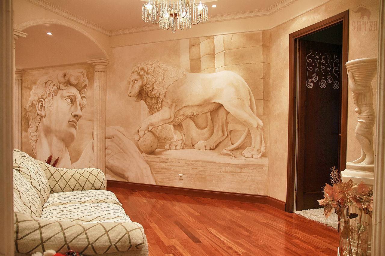 Фрески монтируются непосредственно в стену, но их недостатком можно считать высокую стоимость – 10000 рублей за квадратный метр.