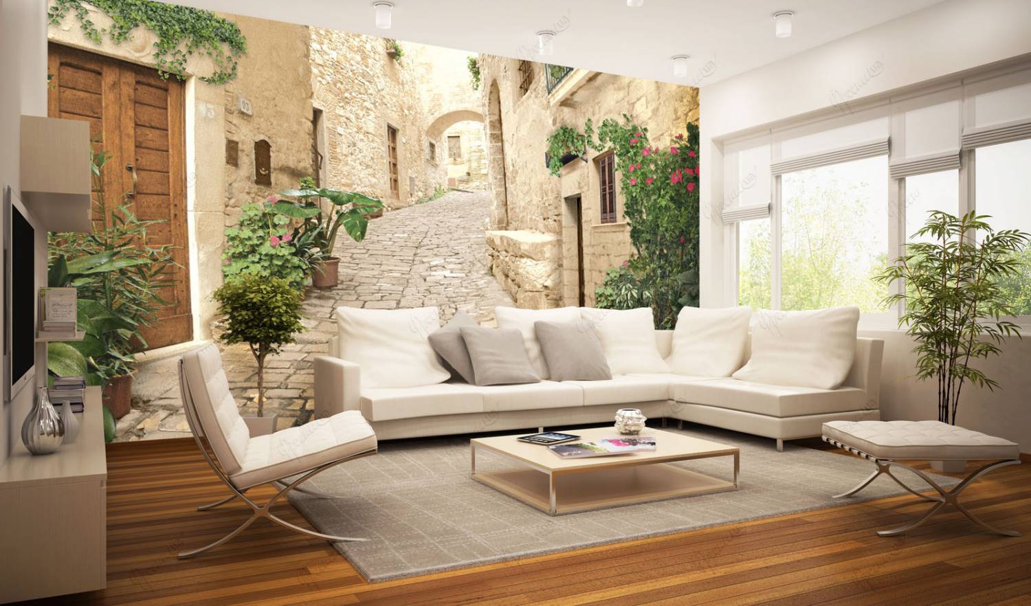 Городские узкие улочки, имитация вида балкона, небоскребы, интерьеры кафе помогут сформировать перспективу и зрительно расширить пространство небольшой комнаты. Один рисунок поможет создать атмосферу домашнего уюта, другой сформирует ритм, способный простимулировать рождение драйва. Зная о том, как «работают» изображения и что такое фреска, на стену в интерьере можно повесить правильный рисунок, тот, что не будет раздражать и вызывать негативные эмоции.