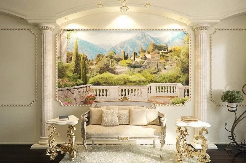 При выборе размера фрески и ее тематики нужно отталкиваться от размера помещения, расстановки мебели и стилевого решения.