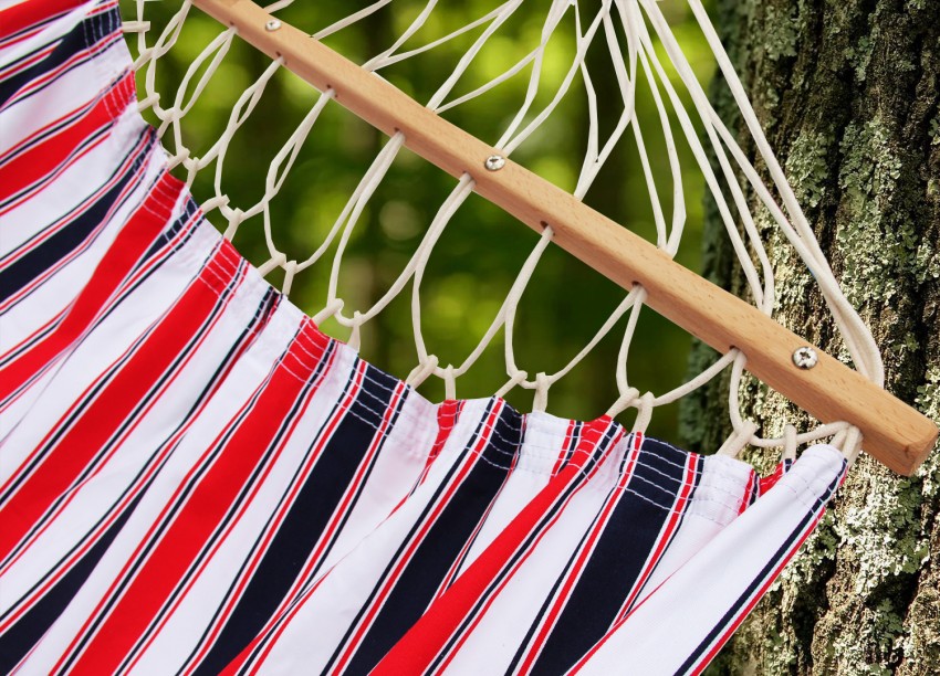 - Материал полотна – грамотный подбор ткани и продуманная конструкция позволят сделать гамак максимально удобным. Для пошива долговечного и надежного изделия рекомендовано использовать плотную ткань – брезентовую, камуфляжную, парусиновую, матрасный тик или бязь. Применение прочных синтетических материалов нежелательно, поскольку они не позволяют «дышать» телу, не смотря на высокие характеристики износостойкости.