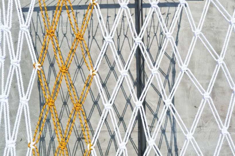 Так же распространенный вариант — капроновый шнур. Отличается высокой жесткостью и стойкостью. Этот материал не боится морозов, дождей и палящего солнца. Подойдет для общественных мест и активного пользования