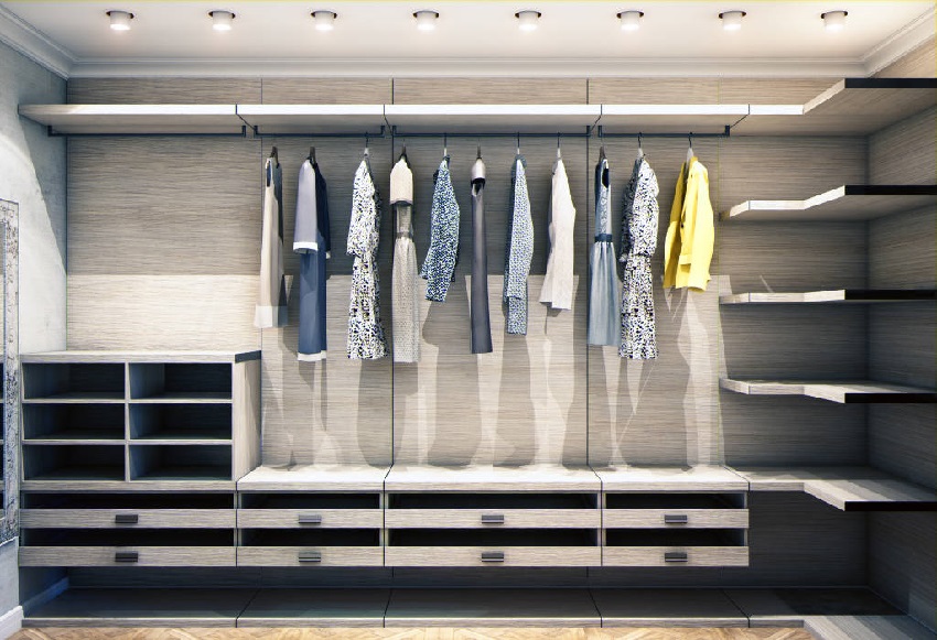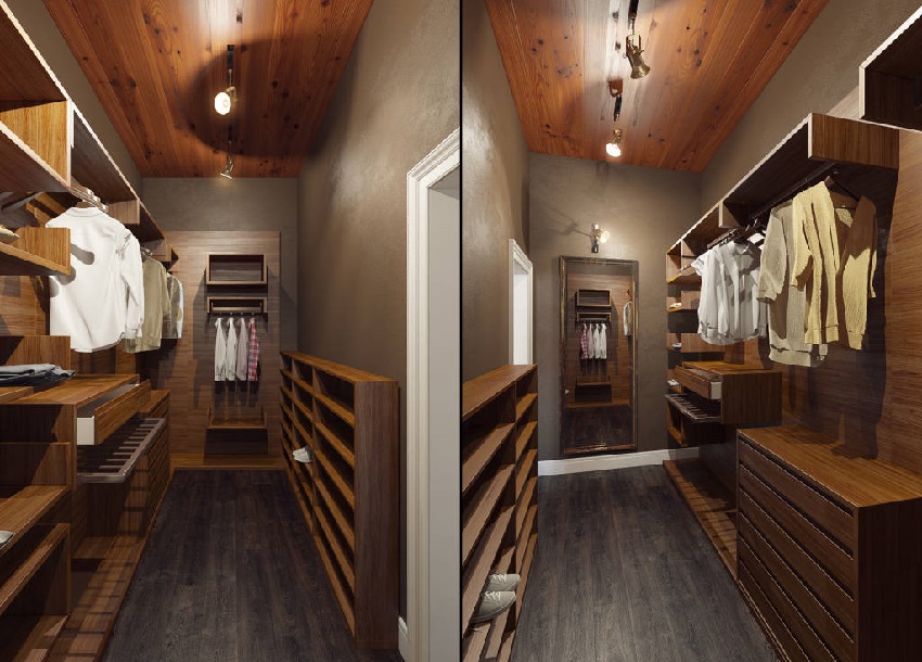 Оформить дизайн гардеробной комнаты можно следующими способами:
