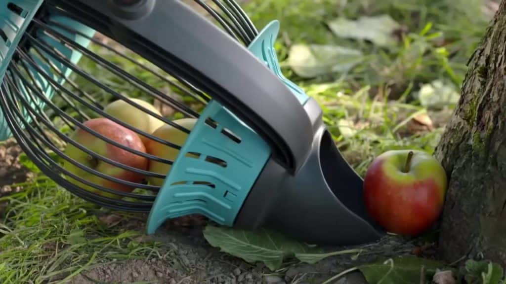 Плодосборник с захватом. Встречаются модели и с ручкой-удлинителем – телескопической трубкой. Действующее устройство напоминает пластиковый клюв или трехпалую руку. Что удобно, оно может захватить и яблочко-ранет, и довольно крупный плод. Обрывается плод все тем же кручением устройства вокруг себя. Но есть и более продвинутые механизмы: вам надо дернуть за леску или рычаг, после чего “клюв” схватит плод, а вы тянете плодосборник на себя, обрывая яблоко с черенка.