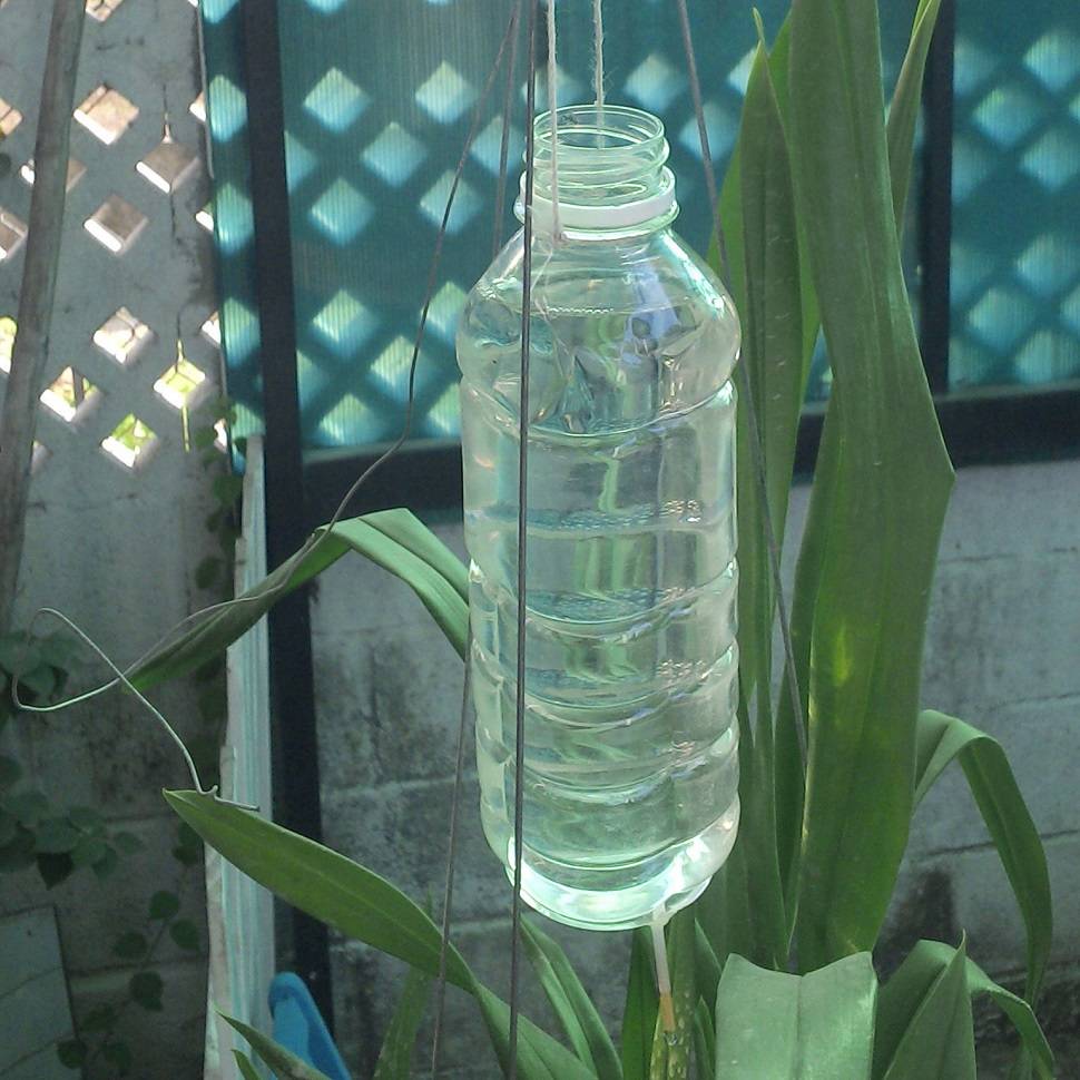 - если бутылки не вкопаны в землю, а подвешены на опоре, возможен ожог или загнивание листьев, на которые будет постоянно течь вода;