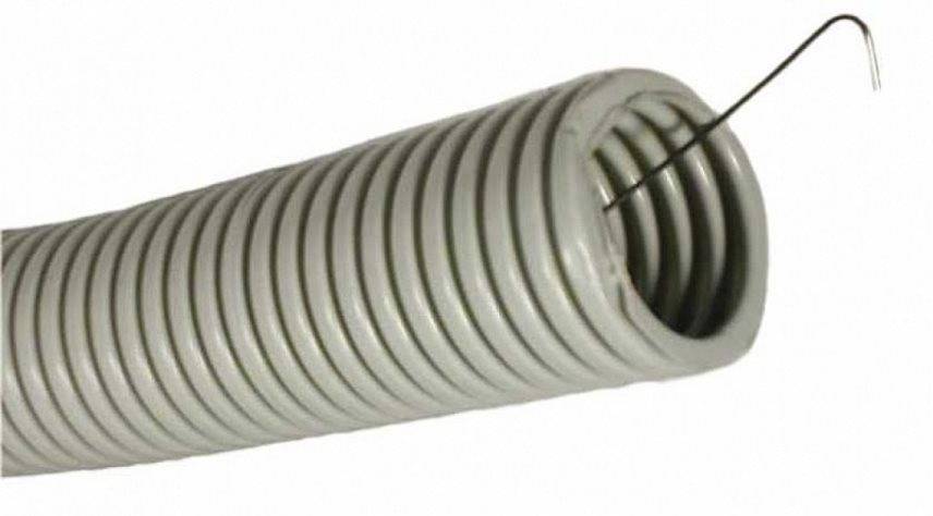 Гофра может иметь зонд или не иметь его. Зонд – это средство протяжки провода внутри трубки. Изготавливается он в виде стальной проволоки, которая в ходе производства помещается во внутреннюю полость гофротрубы. Это приспособление существенно облегчает укладку электропровода, особенно гибкого.