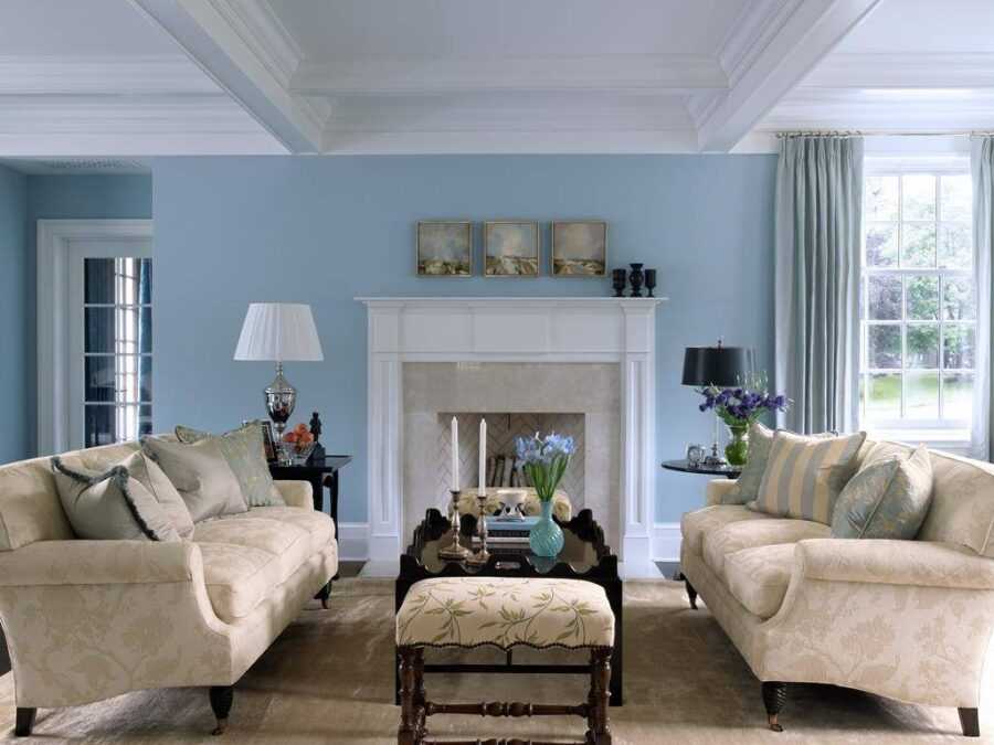 С каким цветом сочетаются голубые обои