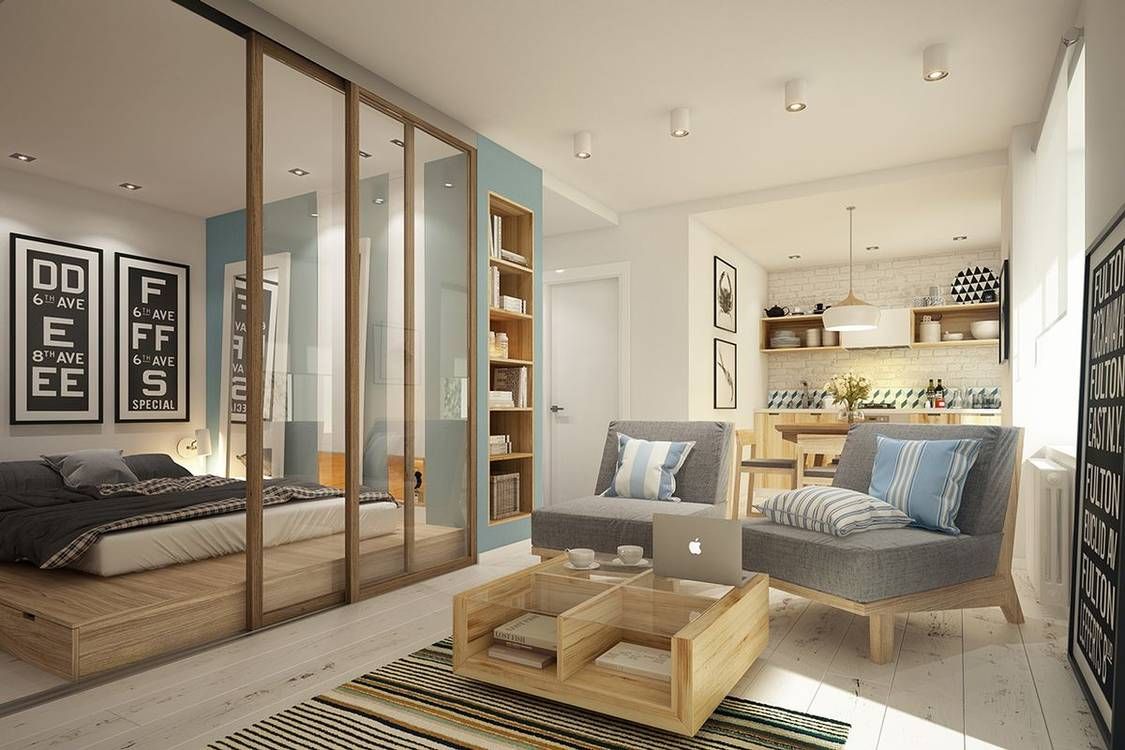 - Помещение маленькой площади не рекомендуется делить на функциональные участки при помощи массивных перегородок, которые способны визуально уменьшить свободное пространство.
