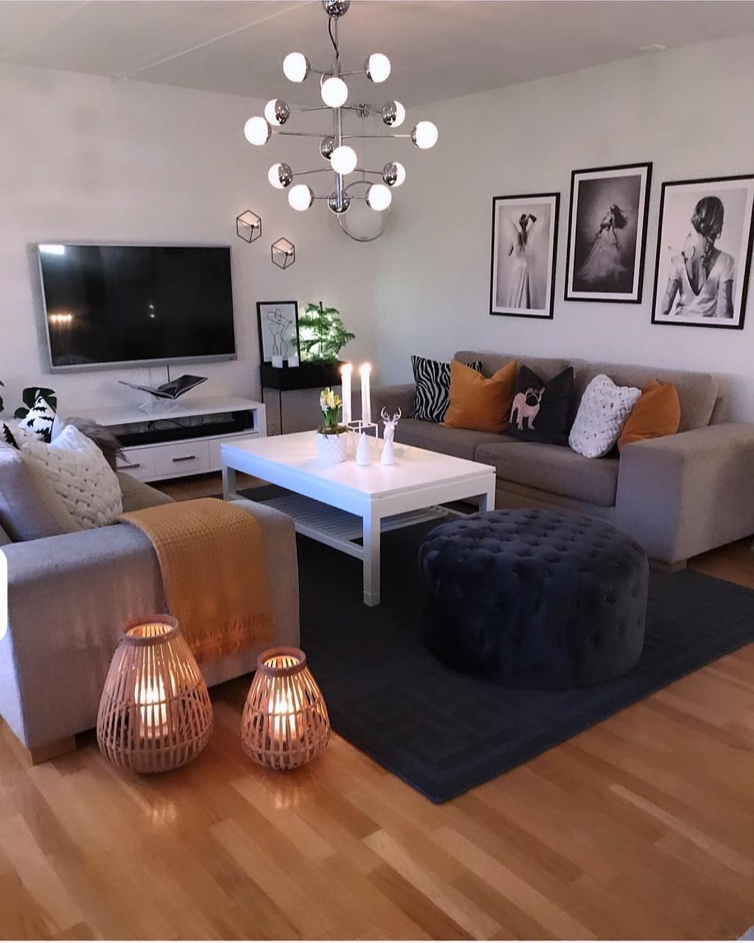 Гармоничное сочетание черного и белого в гостиной.