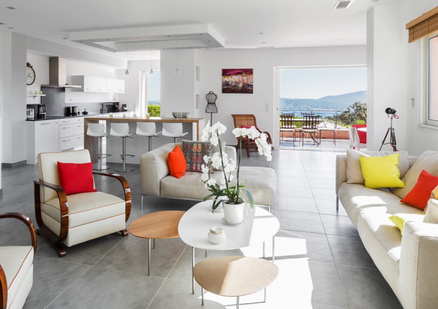 Белый диван идеально подойдет для гостиной в стиле минимализм