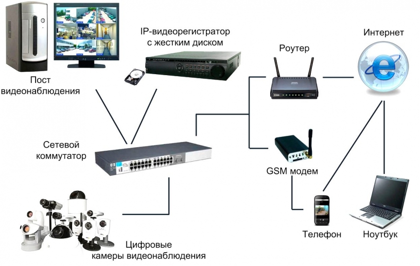 Типовая схема работы системы цифрового комплексного видеонаблюдения