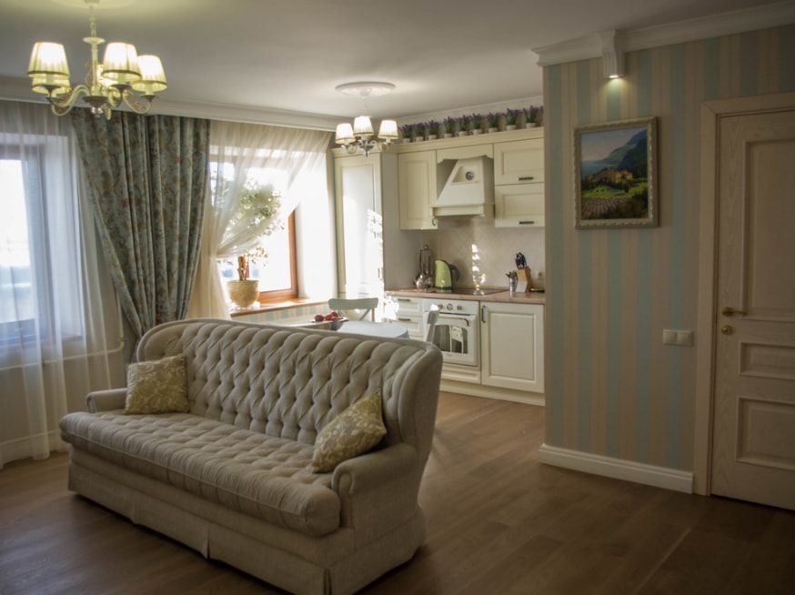 Это романтичное и очень нежное направление, названное в честь южно-французского региона, наполнит дом уютом и теплом. Кухня-гостиная в стиле «Прованс» – это изобилие дневного света, декора, текстиля, орнаментов, цветочных рисунков и мягкой, пастельной цветовой гаммы.