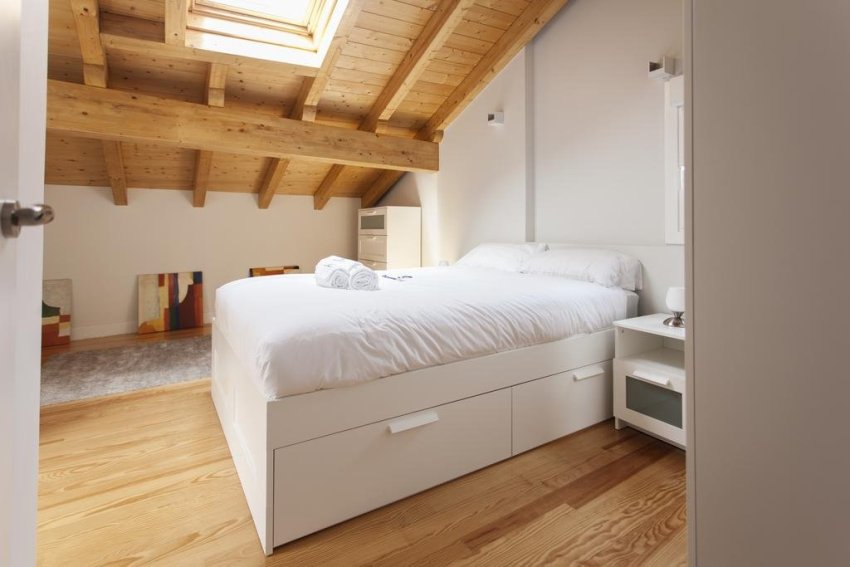 В совсем крошечных комнатах местом для хранения может быть деревянный подиум, сверху на котором организовано место для сна.