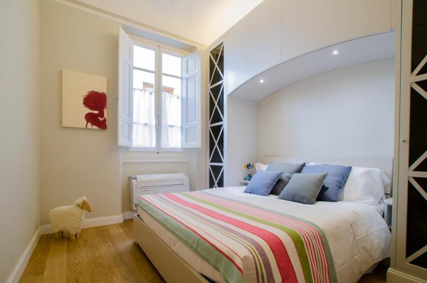 В маленькой спальне целесообразно размещать корпусную мебель от пола до потолка