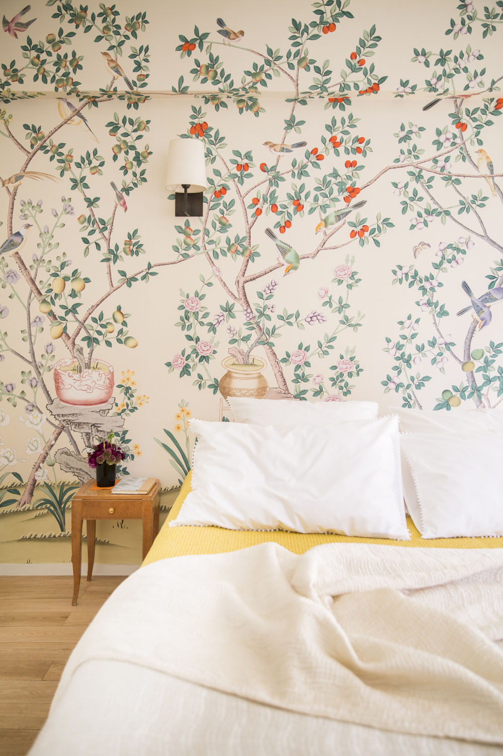Цветовых акцентов можно добавить и с помощью красочных обоев. Оформлять с их помощью всю комнату не стоит, а вот одну из стен — можно.