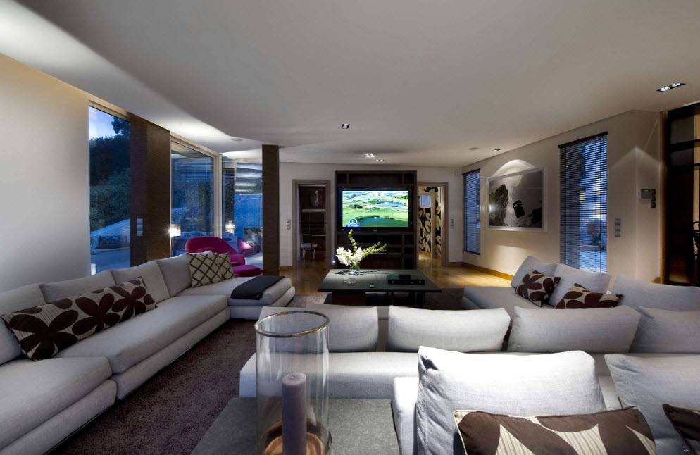 Что касается расстояния между телевизором и креслами, то оно рассчитывается, исходя из размеров экрана. Оптимальным вариантом станет расстояние в 3-5 диагоналей ТВ-устройства.