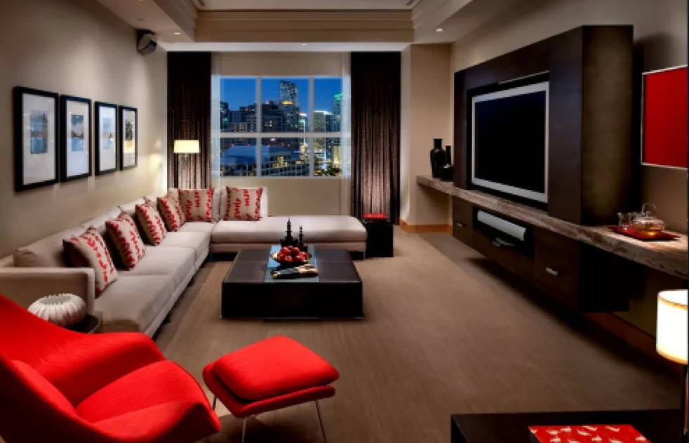 Стоит сначала определиться с расположением телевизора в комнате, а затем расставлять остальные предметы мебели