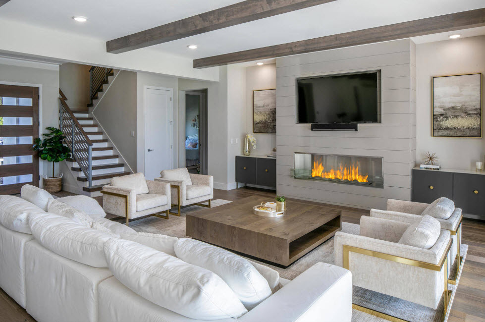 Этот представитель минималистического направления почитаем дизайнерами за функциональность и особый шарм. При всей скромности и лаконичности стиля, оформить дешево в таком варианте комнату не получится. Дело в том, что для действительно стильного дизайна гостиной понадобятся самые современные материалы, соответствующая мебель и характерные атрибуты.