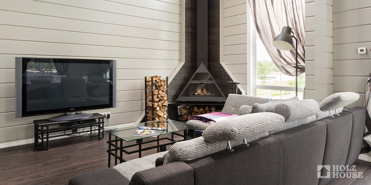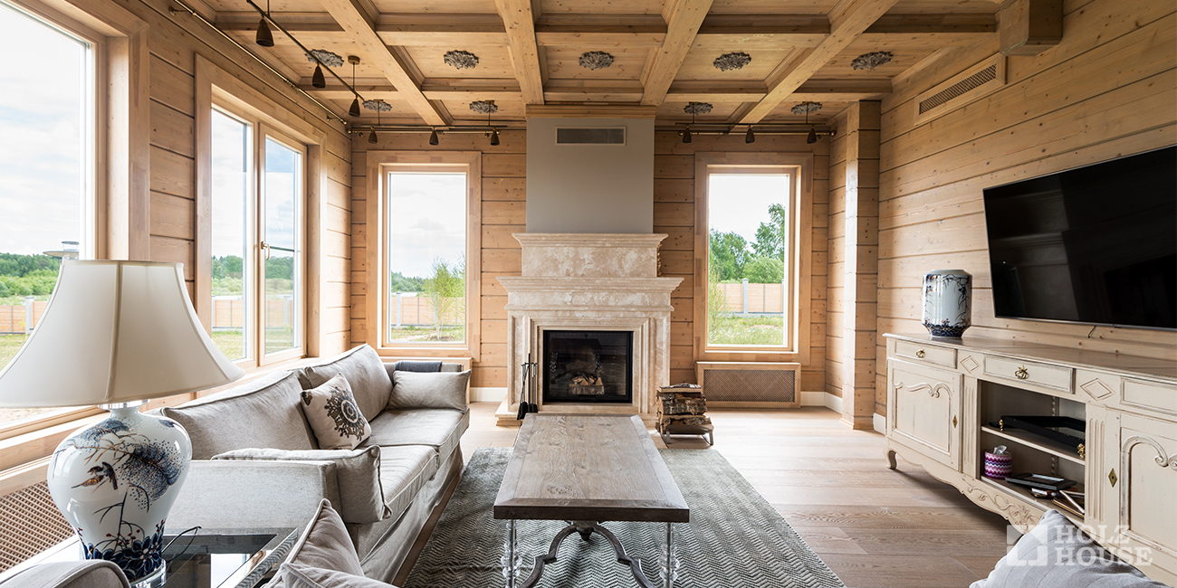 Древесина – это натуральный материал, поэтому и помещение гостиной в доме из дерева лучше оформлять с использованием природных материалов. Многие стилистические направления поддерживают такой экологичный подход, при этом имея очевидные различия между собой.