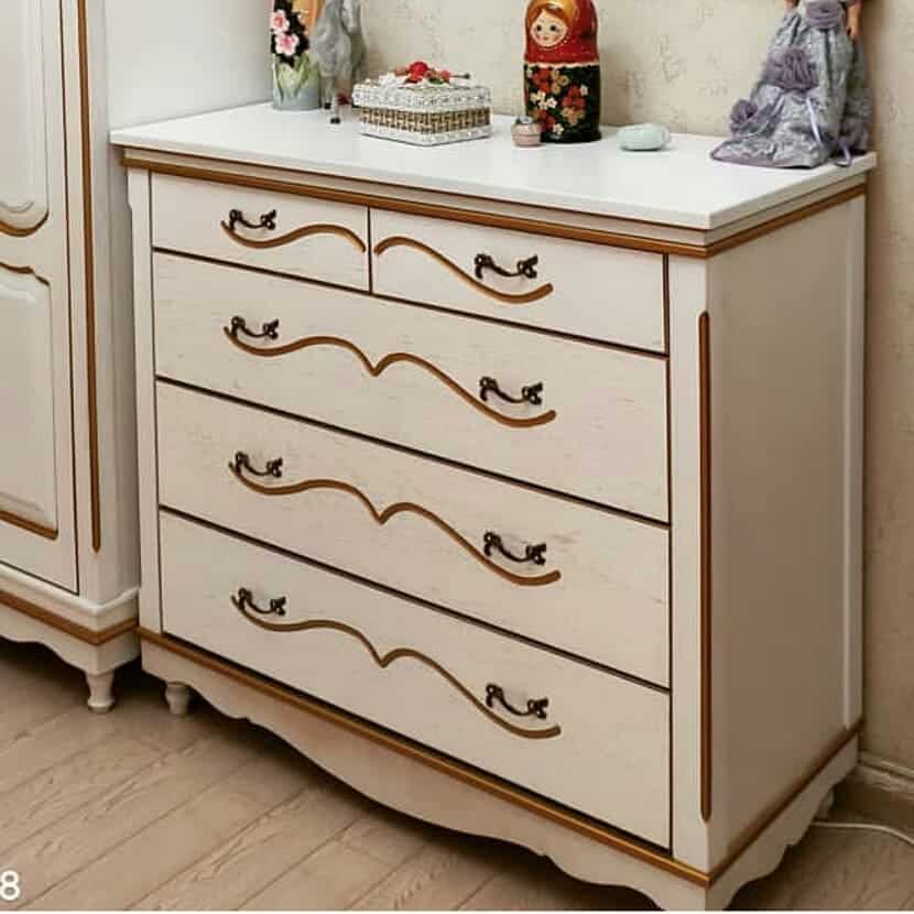 Конечно, в 2021 речь не идет о гигантских резных шкафах и хрустальных люстрах. Но пара светлых деревянных комодов, узорчатая плитка и декоративная фурнитура на дверцах будут очень кстати.