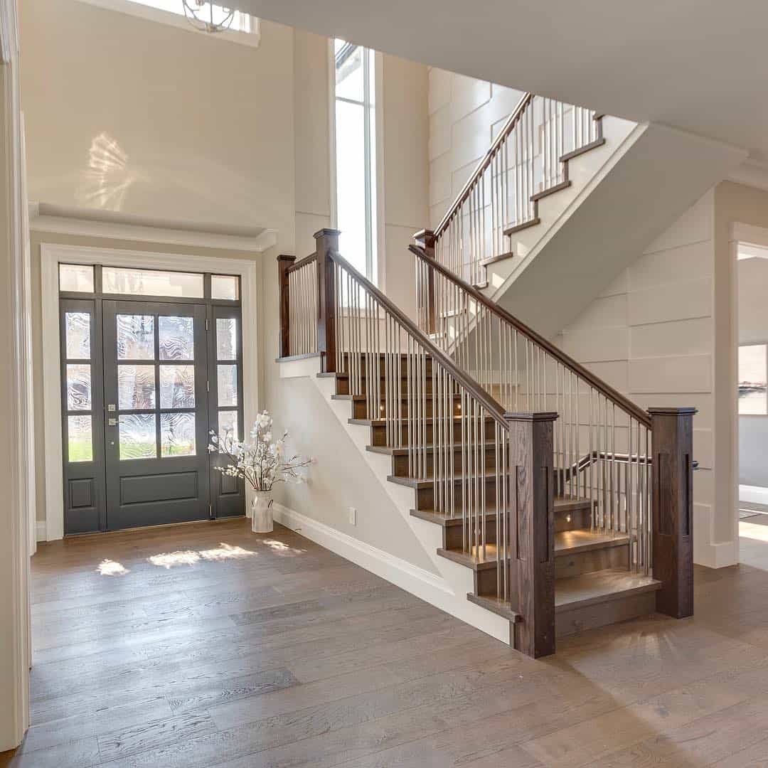 В двухэтажных домах и квартирах пространство в интерьере прихожей под лестницей часто остается пустым. А можно и его сделать функциональным и полезным, дополнительное место для хранения вещей в доме не помешает. Да и дизайн прихожей с лестницей станет более гармоничным.