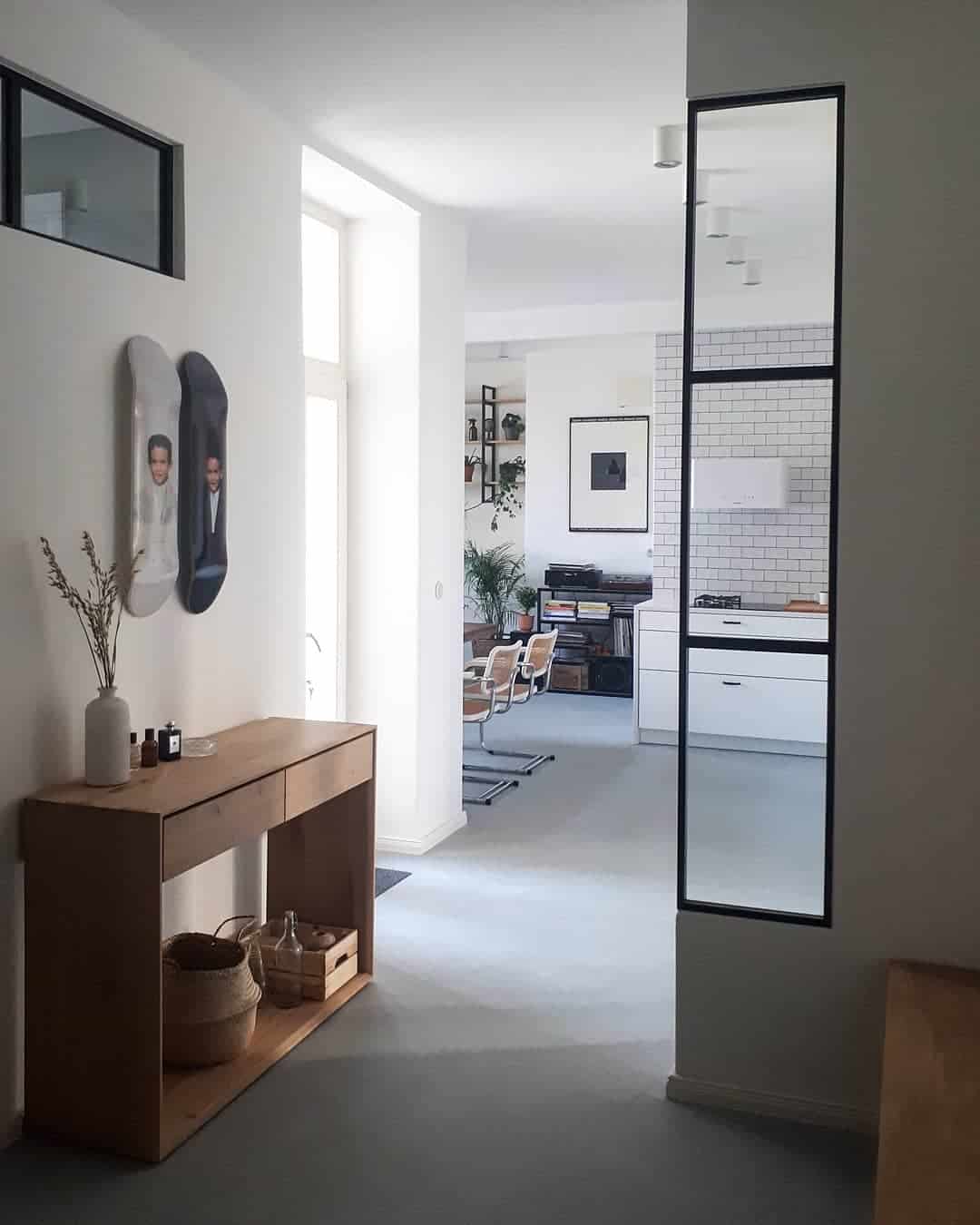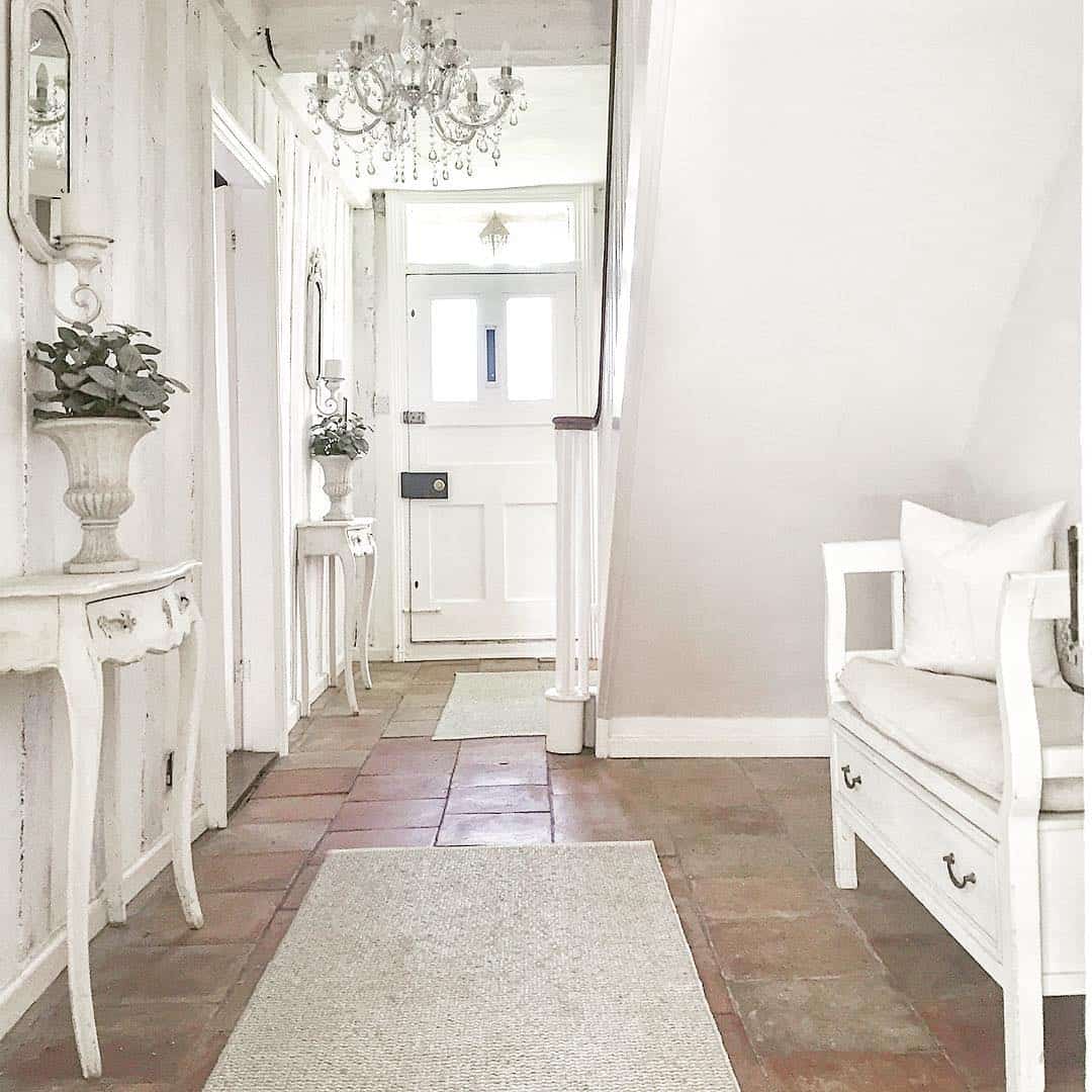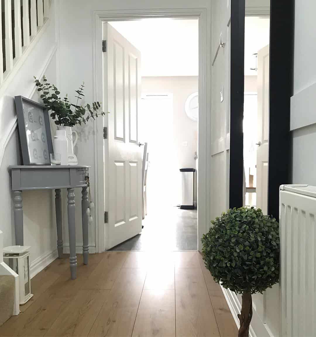 Чтобы исправить ситуацию, можно поставить в такой прихожей какой-нибудь предмет, который будет привлекать внимание. Например, декоративный столик, на котором будет стоять ваза с цветами