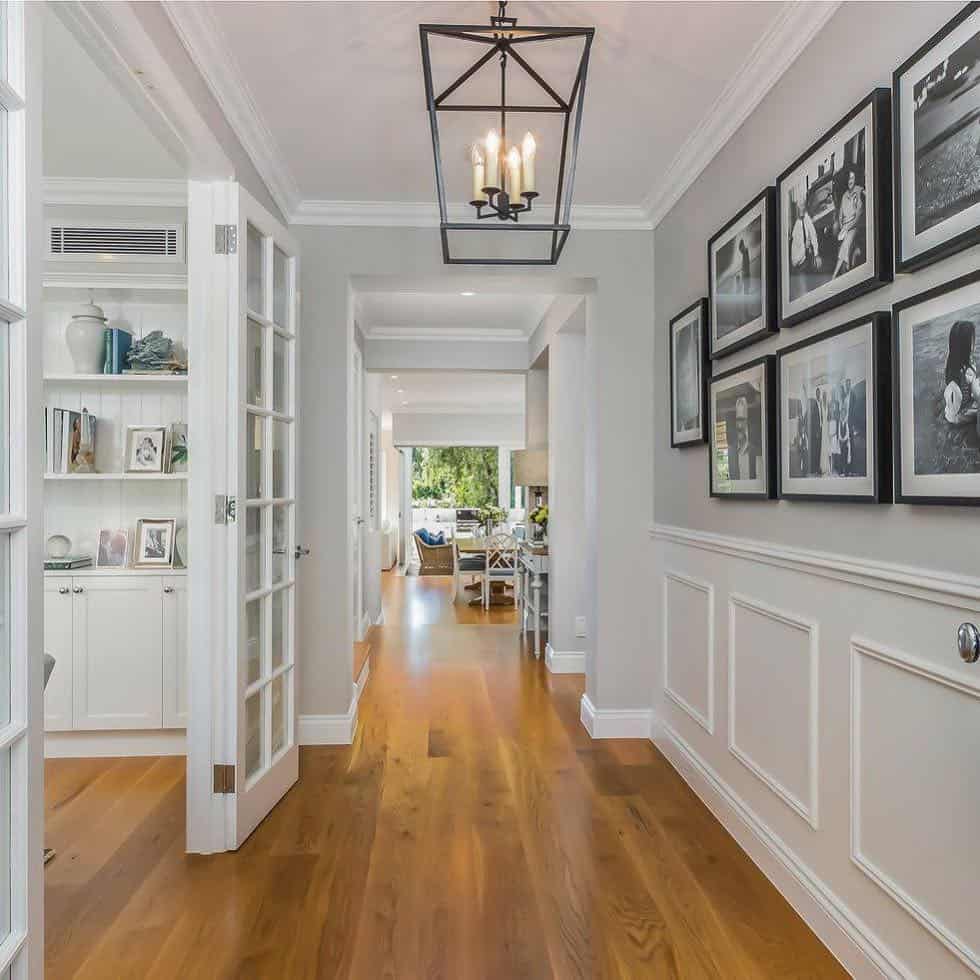 Дополните это большой настенной вешалкой с изящными крючками для одежды, и у вас появится стильная неоклассическая прихожая.