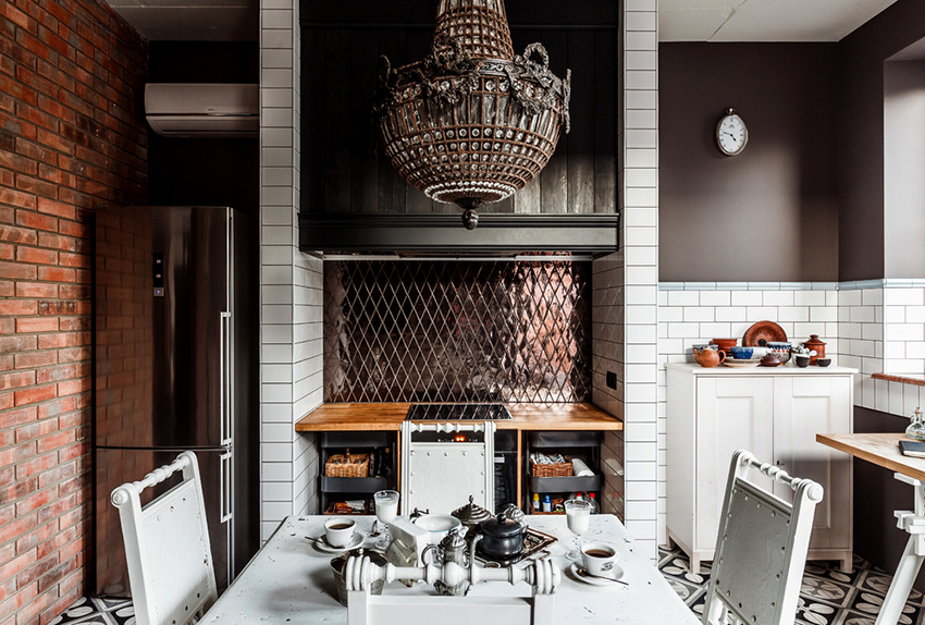 Купольная вытяжка и большая плита — обязательные элементы оформления