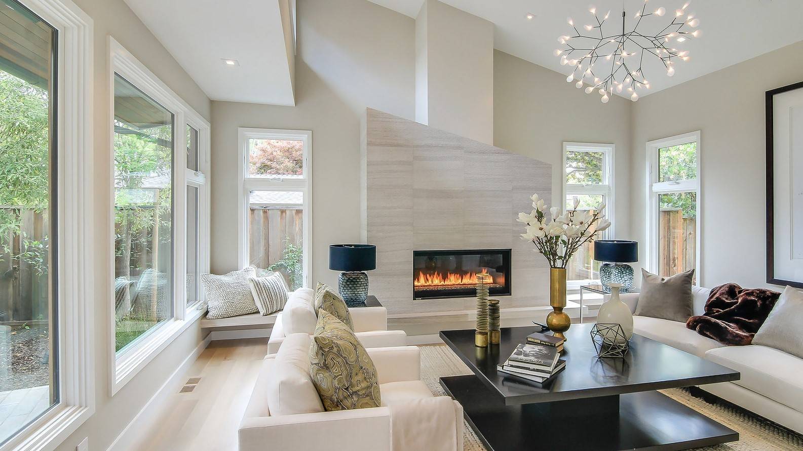 Большое окно заливает светом весь дом. Цвет пола – грецкий орех, был выбран за свой вневременной стиль.