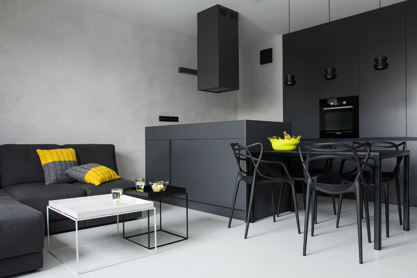 Приветствуется и присутствие в интерьере таких классических цветов как белый и черный. Серая палитра также порадует разнообразием и поможет красиво оформить любой современный дизайн.