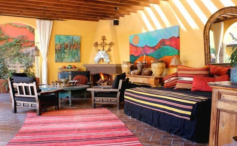 Смелый и эффектный, мексиканский стиль становится все более популярным вариантом оформления. Он создаёт тёплую домашнюю атмосферу, интерьер приобретает яркий и темпераментный характер. Бодрящая цветовая палитра применяется в дизайне гостиной, спальни, кухни или столовой. Крутые интерьеры получаются даже с частичным использованием мексиканских мотивов.
