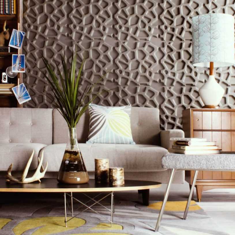 Красивый рельефный рисунок поверхности подбирается в соответствии с выбранным стилевым направлением комнаты и предпочтениями хозяев жилища.