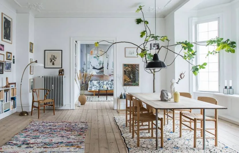 Материалы и цвета только естественные натуральные и их имитирующие. Яркие насыщенные цвета только точечно, в малых количествах и желательно в текстиле. Хотя для стильного дизайна натуральных оттенков более чем достаточно.