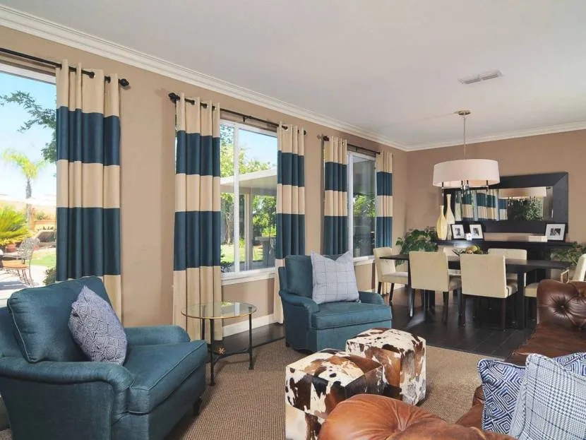 - Элегантно разграничить территорию поможет текстиль: шторы и ковры.