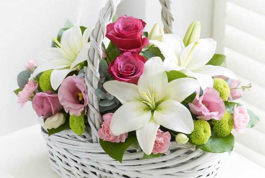 СоветВ корзинку размещайте как классический роскошный букет, так и вьющееся растение. Плющ поможет скрыть изъяны ремонта, подойдет под различные варианты отделки стен.