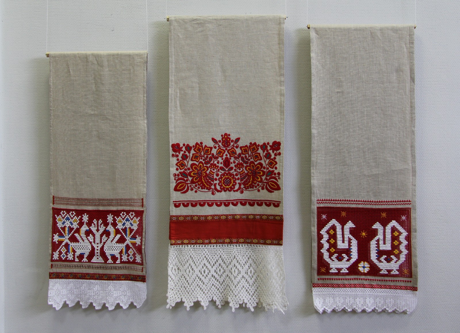 в Калининграде использовался яркий малиновый фон, а сюжет создавался из различных алых, белых, зеленых и золотистых нитей.