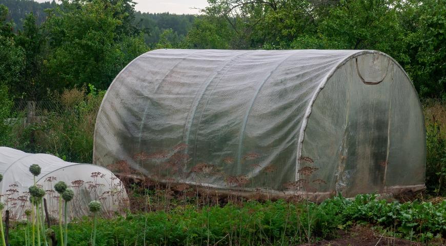 - Подходит только в качестве временного укрытия, с конца мая по август (самый короткий период применения). Например, небольшие пленочные теплички используют для укоренения древесных и многолетних садовых культур: Школка для сеянцев, черенков и деленок