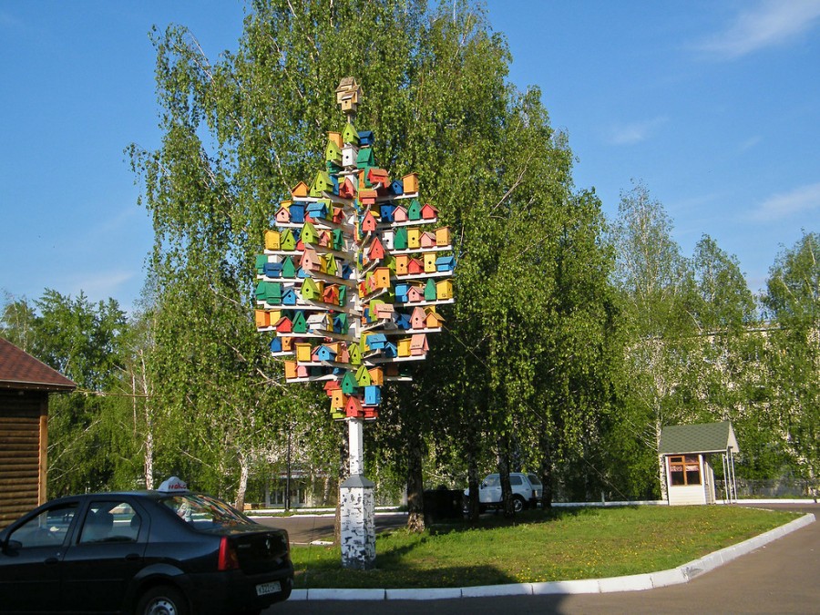 Однако, птицы охотно селятся в таких домиках, ведь внешний вид скворечника практически неотличим от настоящего дерева.