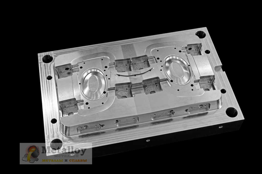 Двухместная пресс-форма, разработана для литья изделий с габаритными размерами 56х188х123мм. Габариты литьевой формы: 425х440х459мм. Материал отливаемых деталей — алюминий. Впрыск в формующие полости выполнен с помощью щелевых литников. Литьевая форма в своей конструкции имеет дополнительные полости для достижения полной и качественной заливки изделий. Выталкивание отливок осуществляется при помощи круглых толкателей диаметром от 4 до 8 мм.