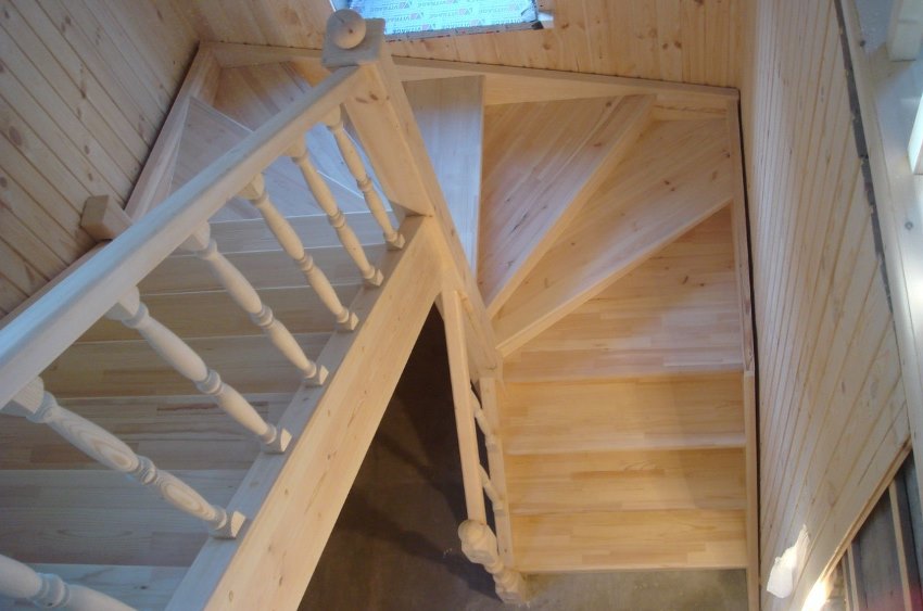 - С забежными ступенями. Разновидность схожа с предыдущей, с тем отличием, что вместо площадок устанавливаются ступени. Проступи имеют форму усеченного треугольника. Такая методика позволяет экономить пространство. Конструкции с забежными ступенями отличаются элегантным внешним видом. Главный недостаток – сложность проектирования и установки.