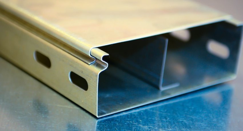 Обратите внимание! Металлические короба больше всего подходят для помещений с высокой степенью пожарной опасности. Лоток оцинкованный