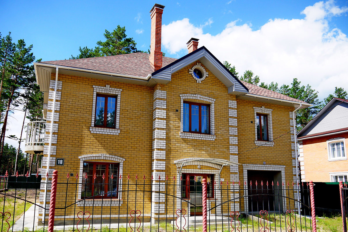 Коттедж из кирпича — не бюджетный вариант, но долгий срок эксплуатации полностью оправдан. Единственная проблема может возникнуть при несоблюдении правил установки