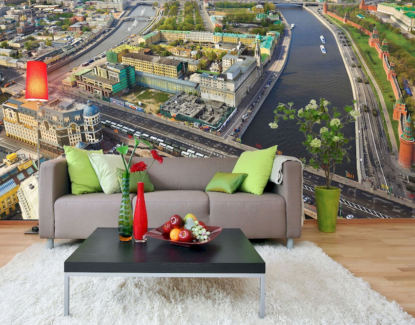 Оформляя стены в гостиной, следует прислушаться к мнению всех членов семьи, поскольку именно в этой комнате они проводят большую часть времени. Также здесь, как правило, принимают гостей и отмечают все праздники. Соответственно, фотообои должны смотреться оригинально и нарядно.