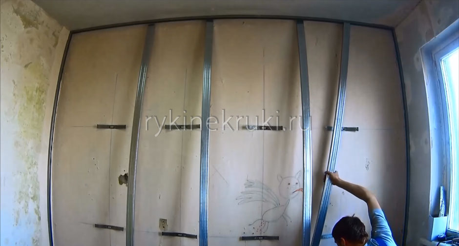 - Монтаж гипсокартона на стену с предварительной обрешеткой стены