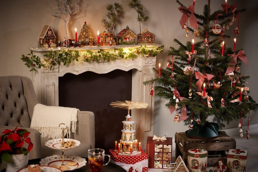 Это могут быть рукавички и красные носочки, керамические сувениры и съедобные сувениры — печенье и пряники. Орехи, шишки и мандарины, завернутые в фольгу, можно также использовать вместо игрушек. Ими же можно оформить зону для подарков.