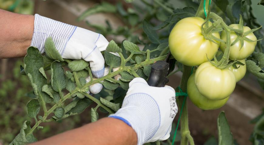 - Пасынки лучше выламывать, стараясь не допускать попадания сока растения на руки.
