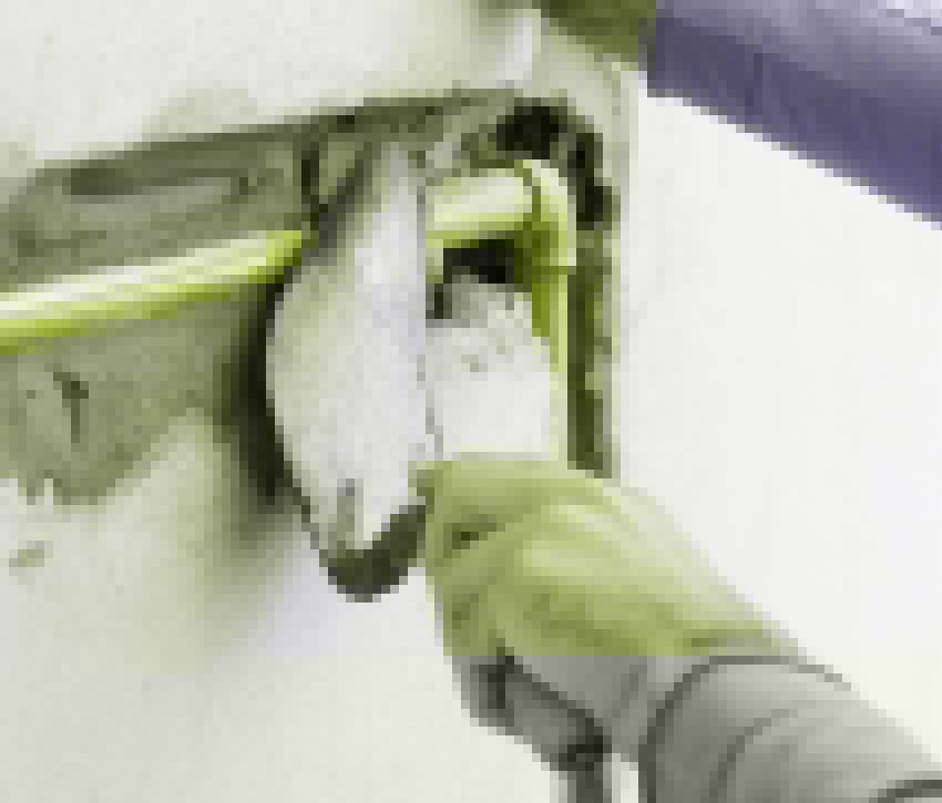 - Толщину слоя можно регулировать углом наклона шпателя. Большой угол наклона обеспечит тонкий слой шпатлевки. Чем толще слой, тем больше вероятность, что он отпадет.